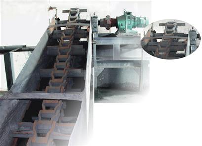 (一)結構:南主動鏈輪、從動鏈輪、鏈條、減速器、電機、鋼板槽、托輥、壓輥、支架等組成。鋼槽或水泥渣溝底用耐磨材料鑲制,槽內用水封。漏灰斗口必須插人槽內水面以下,達到水封目的。